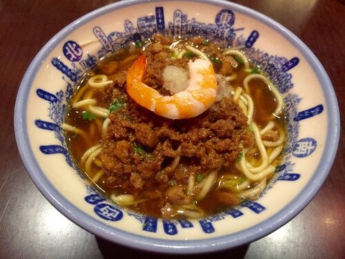 「度小月」三里屯太古里店で、遅めのランチ。 台湾の小吃レストランで、本店は台南にあります。 看板料理の「担仔麺」。 お椀の直径は15cmもないくらい小さくて、ぺろりと食べられます。 エビの下には、ニンニクのすりおろし。 パクチーも入ってます。 見た…