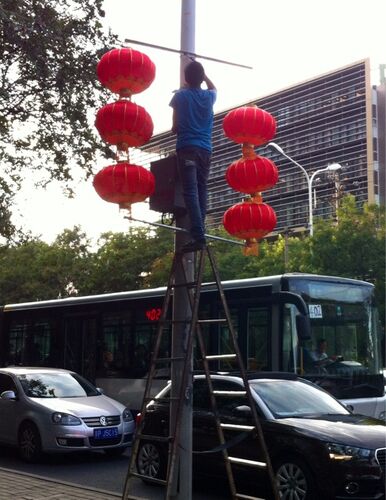 去年の今頃は、大通りにちょうちんが飾られてました。 これは去年の写真です(2014-10-01 - life is short the word is great)。 今年は、このちょうちんを見かけません。 上の飾り付けも、今年はありません。 贅沢禁止令の影響? でも、こういうのって、贅…