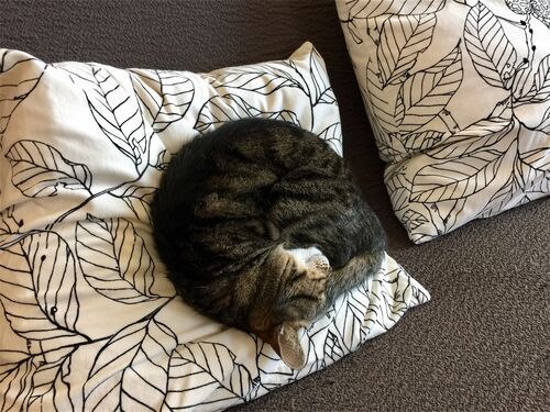 頭が逆さでも、寝れます。 半目じゃん。 「放っといてニャ」 にほんブログ村