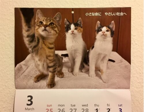 あ、もう3月だった! 友達からもらった、保護ネコちゃんのカレンダーをめくったら… いっきに癒されました〜。 特に左のネコちゃんは、いたずら好きの子猫だったメスネコを彷彿させます。 遊びこそが人生ニャー。 (エントリーのタイトルは、単なる回文です。…