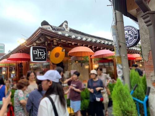 3ヶ月前、益善洞(익선동)を見に行ったら… 人の多さに圧倒されました。 今朝、10時に行ったら… 人が少なくて、快適。 でも、ほとんどのお店が閉まってます。 グレープフルーツのかき氷が名物のカフェ。 (もちろん、閉まっている。) どうやら、占い(おみ…