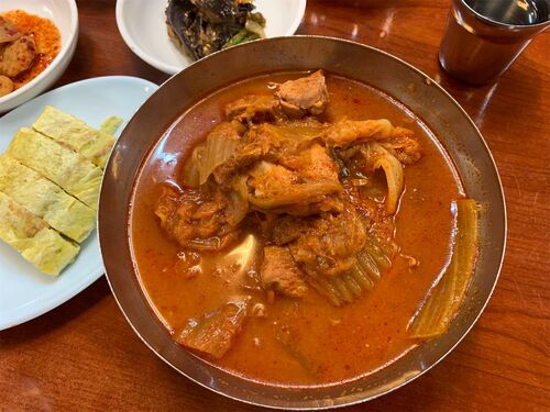 ローカル感ただよう、굴다리식당へ。 孔徳(ゴンドック)駅のそばで、住所は、麻浦区 도화동181-45。 キムチチゲ(1人: 8000ウォン)。 2人分ですが、大椀1つが来ます。 なぜなら、おかわり自由だから。 このお店に数回来てますが、3人の時も1つをシェアして…
