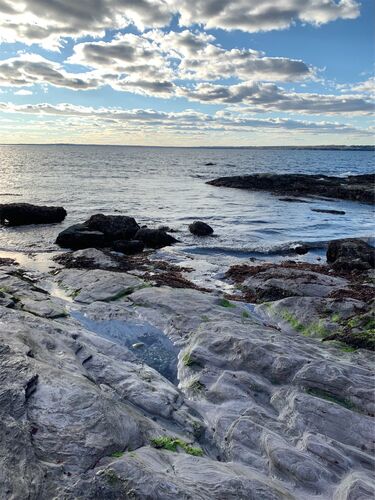 海の景色がきれいだと聞いて、Brenton Point State Parkへ。 泳げる場所はなく、魚釣りや散歩ができます。 駐車場は無料。 海だけでなく、地層も美しい。 11月11日 14時46分。 海辺のモニュメントや凧揚げができる広場もあります(が、オフシーズンでカイト…