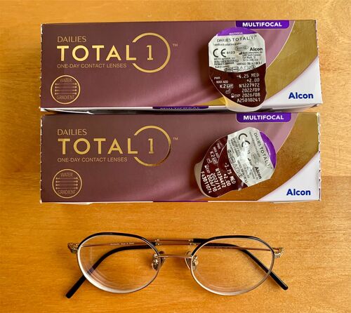 長年コンタクトレンズを使っています。 近眼なんですが、いつのまにか老眼になって(涙)数年前から遠近両用コンタクトにしました。 5年前、韓国に住んでた時に購入した近視用メガネ。 近所のメガネ屋さんには、銀色の極細フレームの丸メガネばかり(女性用…