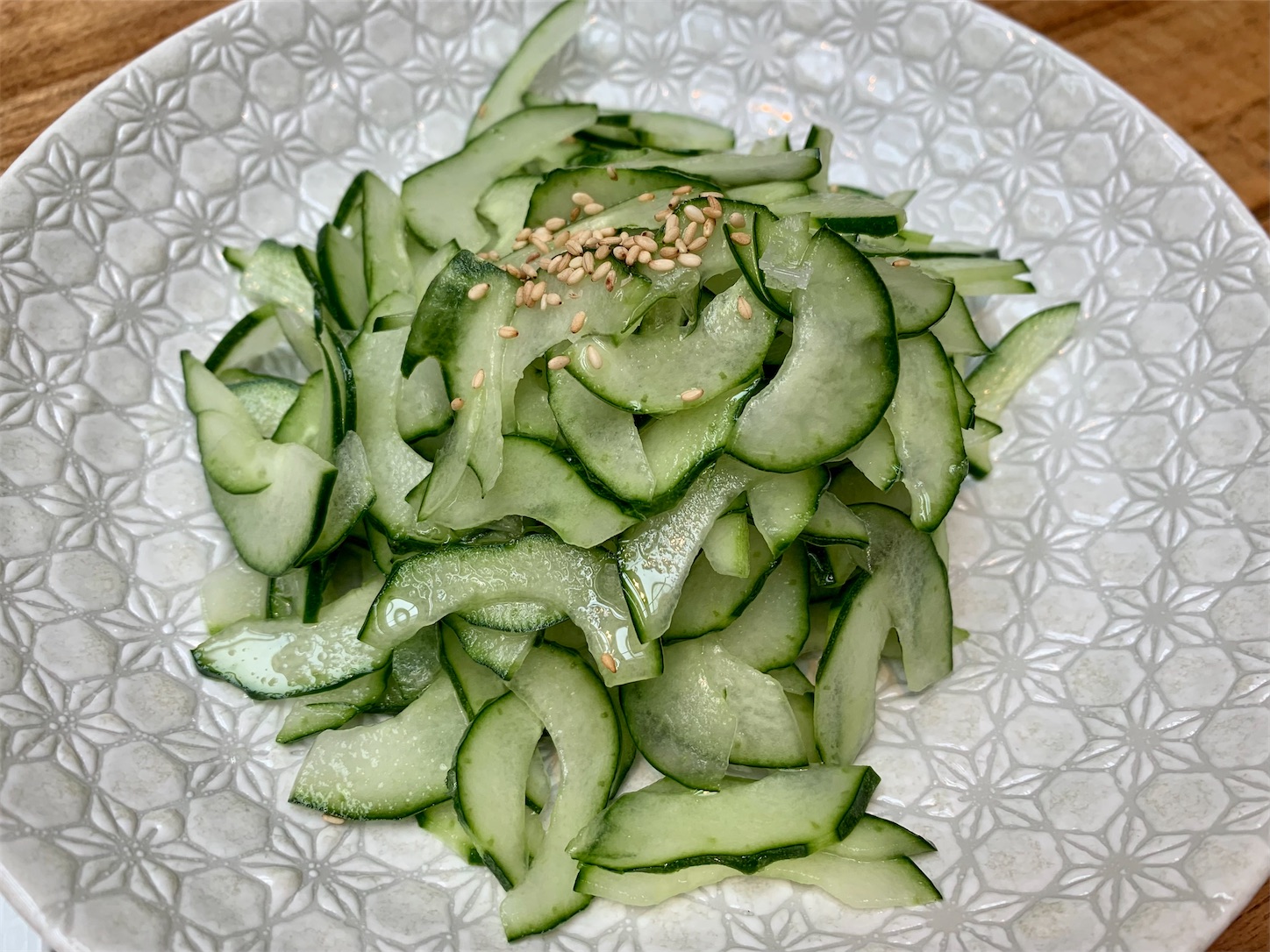 甘酢で和えたキュウリ。