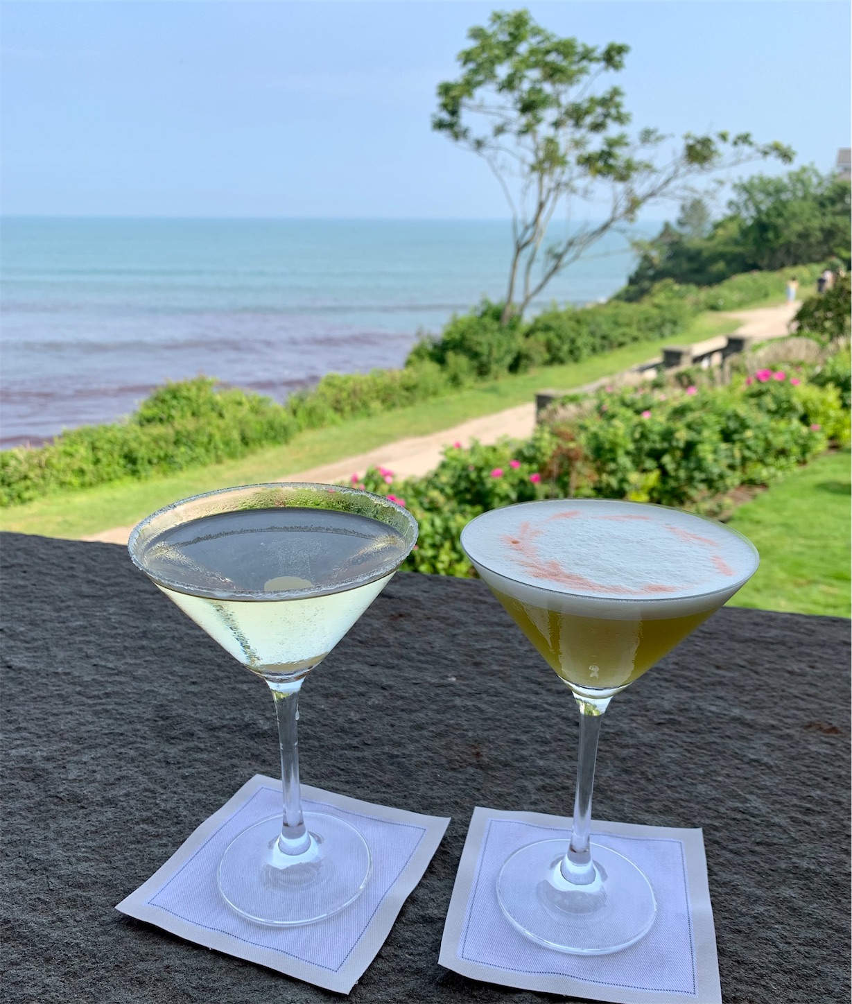 私の洋梨マルティーニと夫のメロンのカクテル。